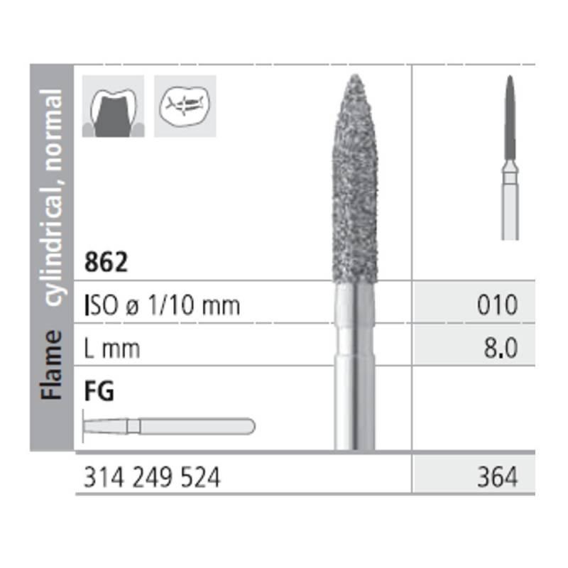 Fresas Diamante FG 364 Llama Cilíndrica, Normal 862-010 Medio L8 mm Caja 6 uds Intensiv