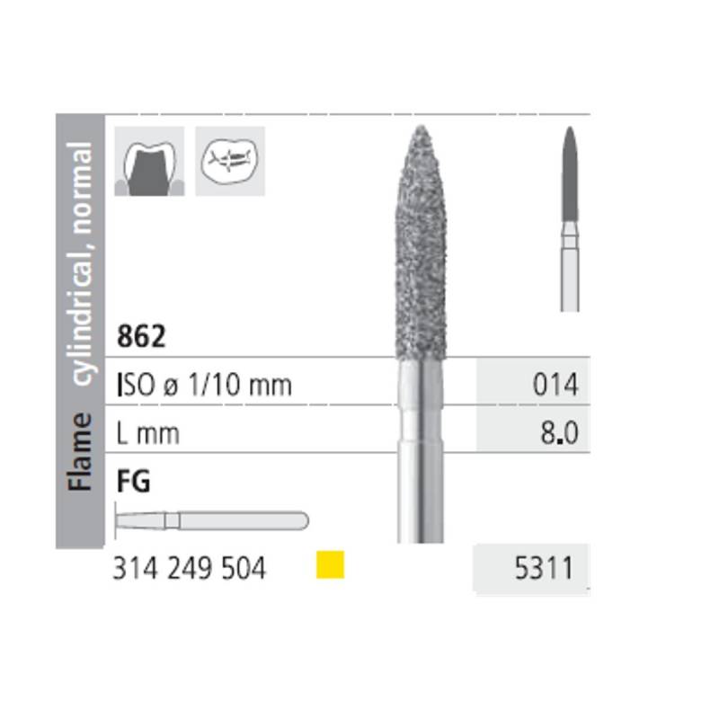 Fresas Diamante FG 5311 Llama Cilíndrica, Normal 862-014 Extra Fino L8 mm Caja 6 uds Intensiv