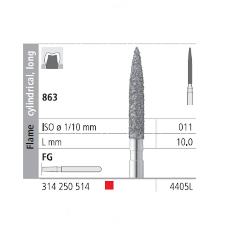 Fresas Diamante FG 4405L Llama Cilíndrica, Larga 863-011 Fino L10 mm Caja 6 unidades Intensiv