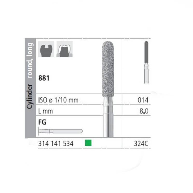 Fresas Diamante FG 324C Cilindro Redondo, Largo 881-014 Grueso L8 mm 6 uds Intensiv