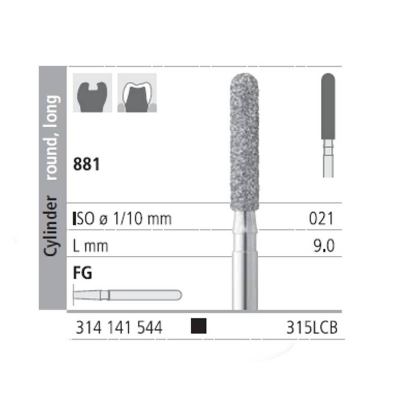 Fresas Diamante FG 315LCB Cilindro Redondo, Largo 881-021 Super Grueso L9 mm 6 uds Intensiv