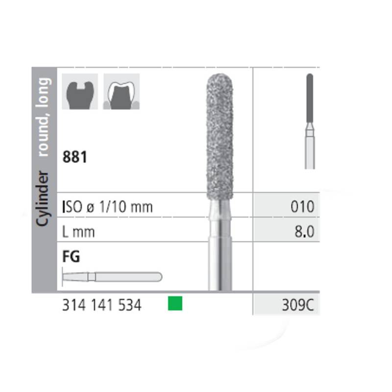 Fresas Diamante FG 309C Cilindro Redondo, Largo 881-010 Grueso L8 mm 6 uds Intensiv