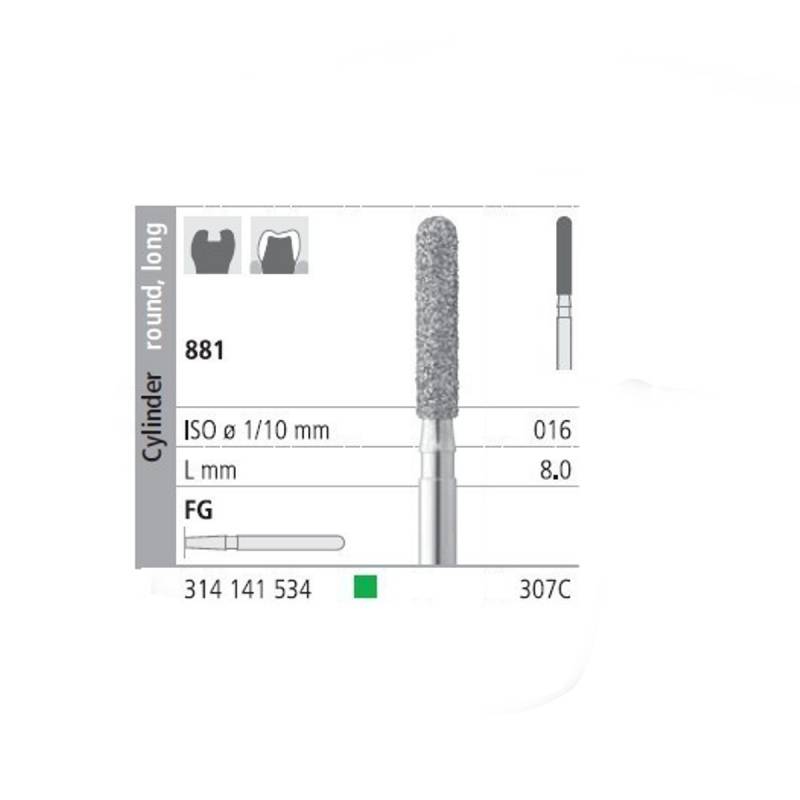 Fresas Diamante FG 307C Cilindro Redondo, Largo 881-016 Grueso L8 mm 6 uds Intensiv