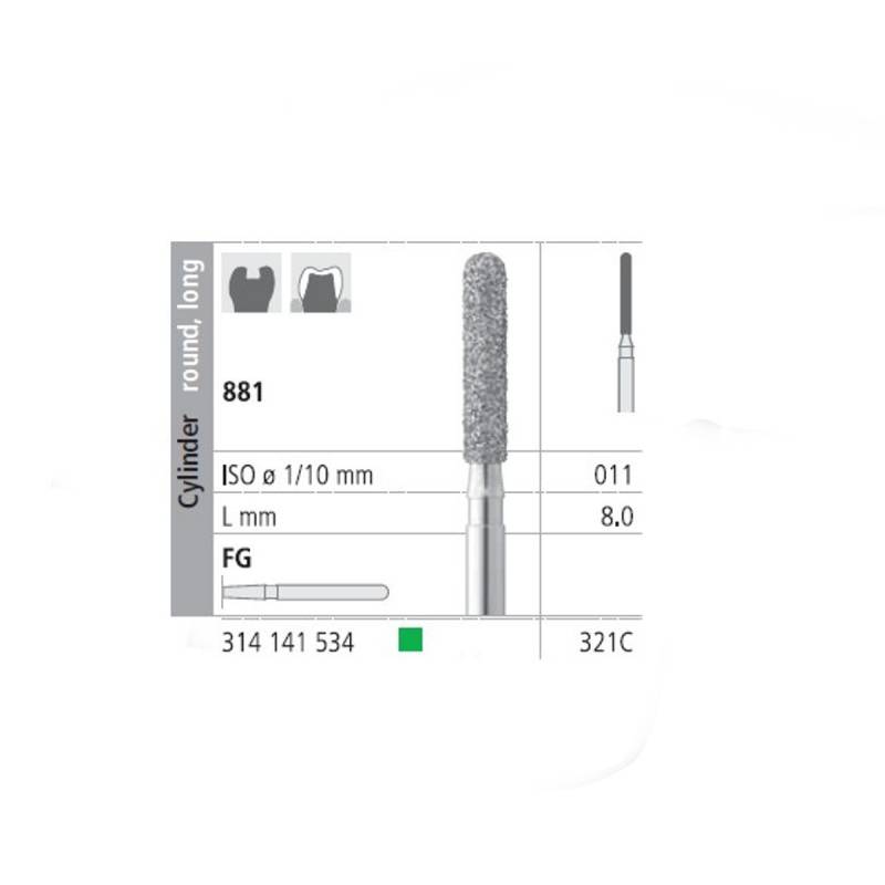 Fresas Diamante FG 321C Cilindro Redondo, Largo 881-011 Grueso L8 mm 6 uds Intensiv