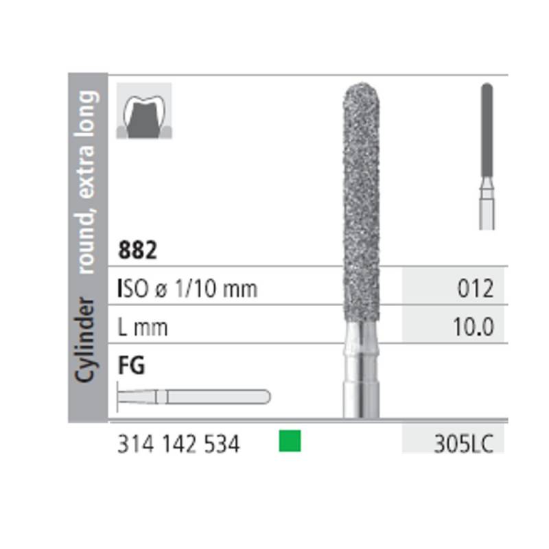Fresas Diamante FG 305LC Cilindro Redondo, Extra Largo 882-012 Grueso L10 mm 6 uds Intensiv