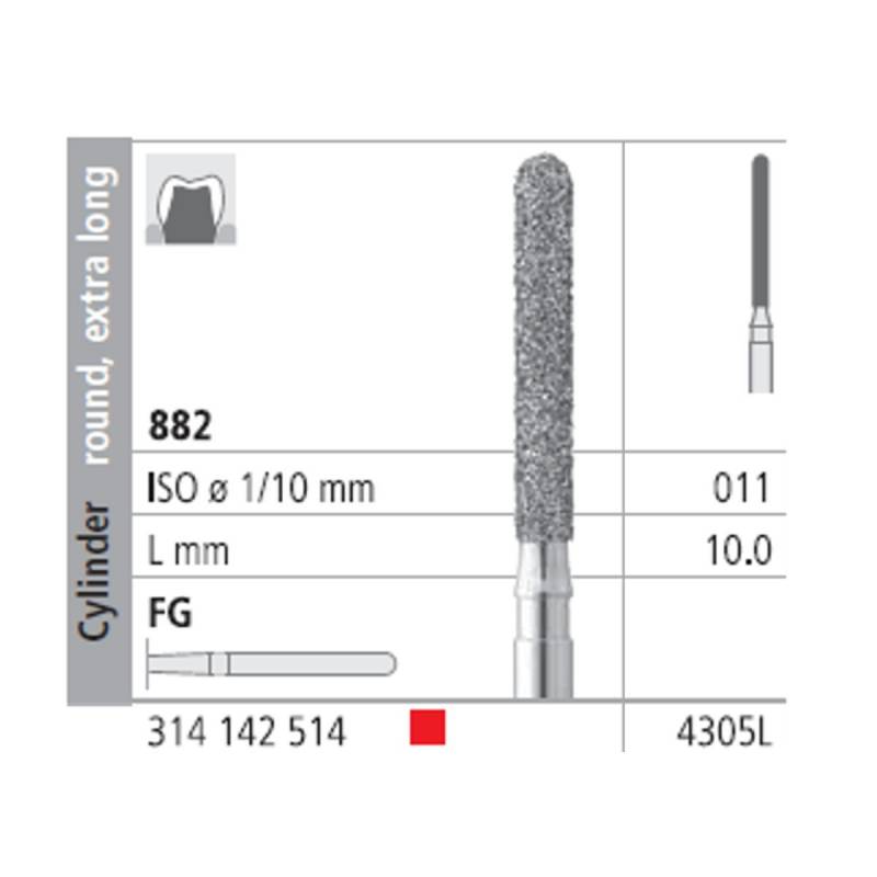 Fresas Diamante FG 4305L Cilindro Redondo, Extra Largo 882-011 Fino L10 mm 6 uds Intensiv