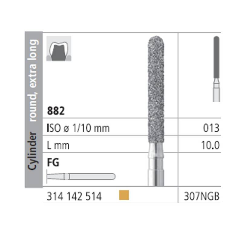 Fresas Diamante FG 307N GB Cilindro Redondo, Extra Largo 882-013 Fino L10 mm 6 uds Intensiv