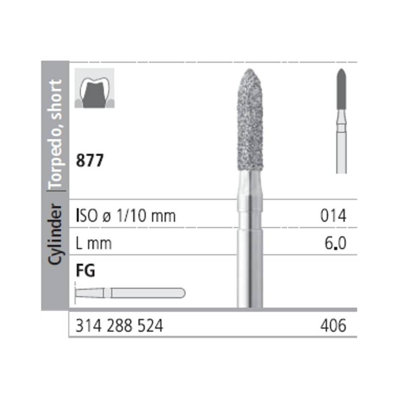 Fresas Diamante FG 406 Cilindro, Torpedo Corto 877-014 Medio L6 mm 6u Intensiv