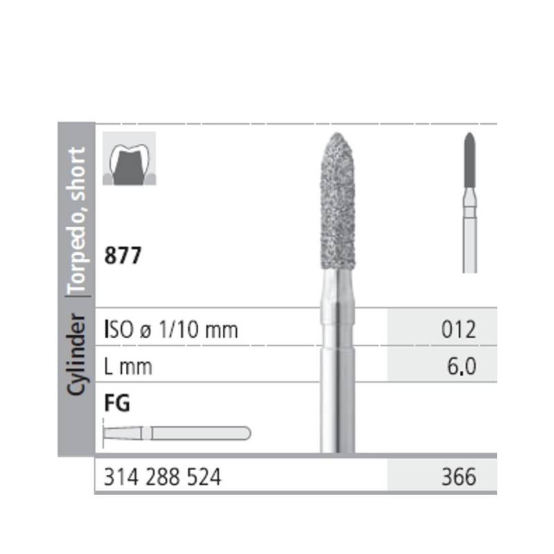 Fresas Diamante FG 366 Cilindro, Torpedo Corto 877-012 Medio L6 mm 6u Intensiv