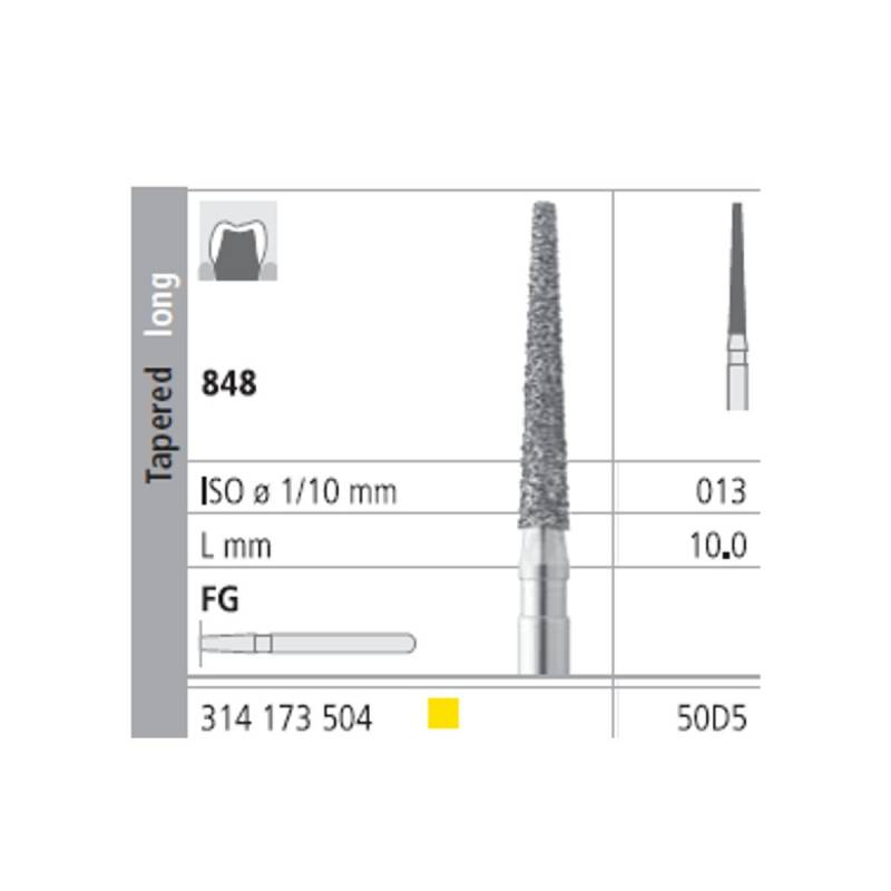 Fresas Diamante FG 50D5 Cónico, Largo 848-013 Extra Fino L10 mm 6 uds Intensiv