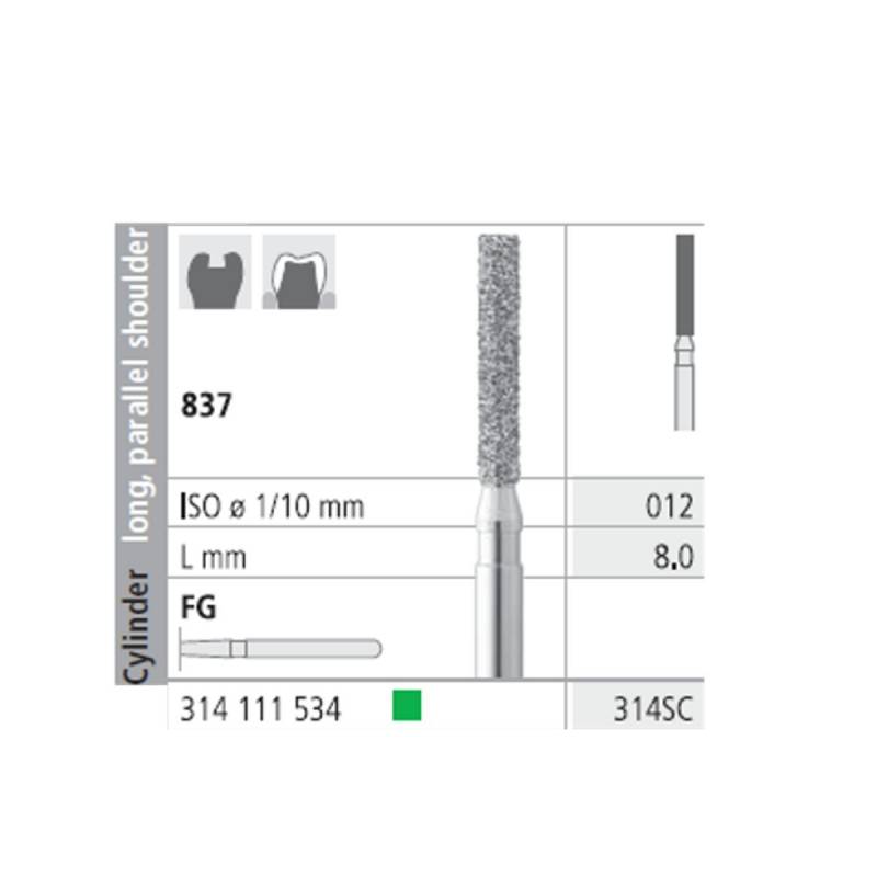 Fresas Diamante FG 314SC Cilindro, Largo, Hombro Paralelo 837-012 Grueso 6 uds Intensiv