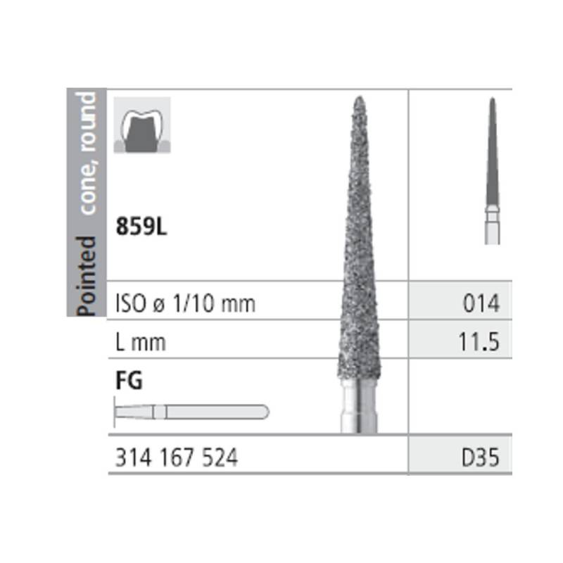 Fresas Diamante FG D35 Medio 859L-014 Lanza Cono Puntiagudo 6 uds Intensiv