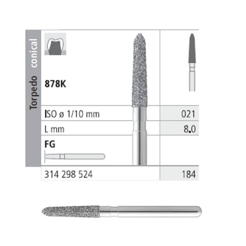 Fresas Diamante FG 184 Torpedo Cónico 878K-021 Medio L 8mm Caja 6u Intensiv