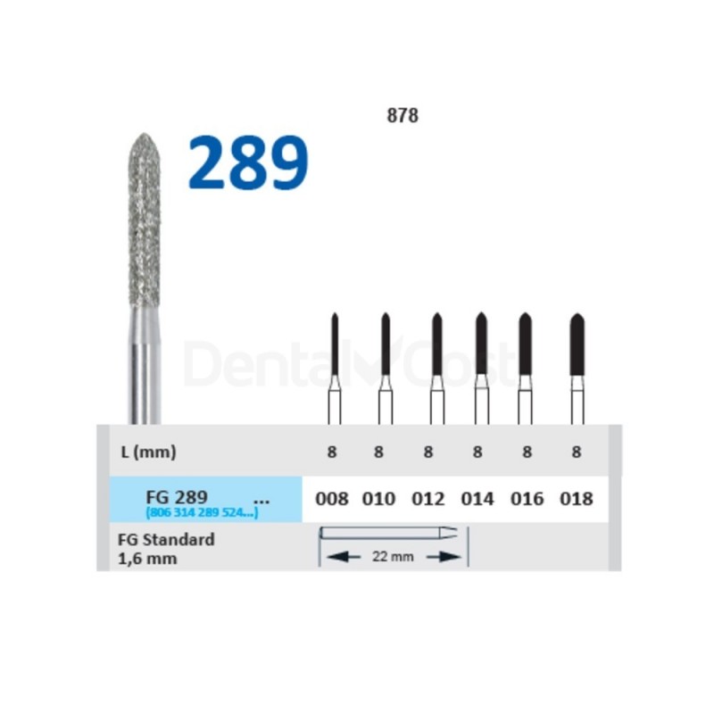 Fresa Diamante Turbina FG 289 Fig. 878 L8 Torpedo Clínica Blister 5 u Horico