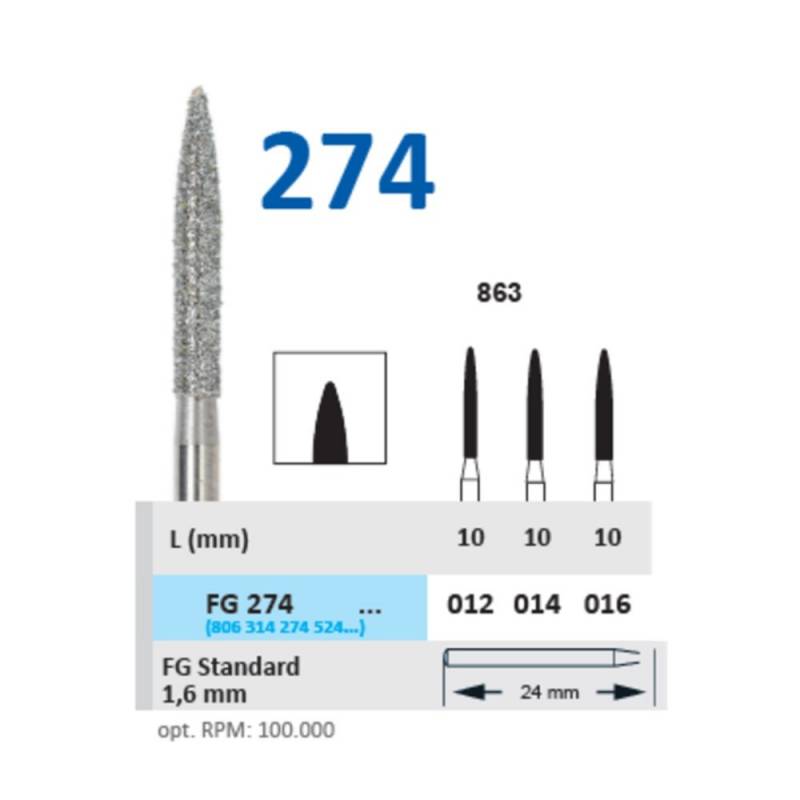 Fresa Diamante Turbina FG 274 Fig. 863 Llama Alargada, Clínica 5u Horico