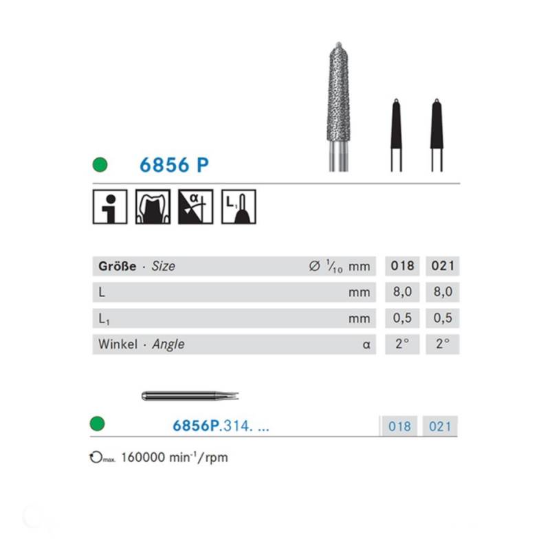 - Fresa diamantada 6856P.314 turbina, clínica.