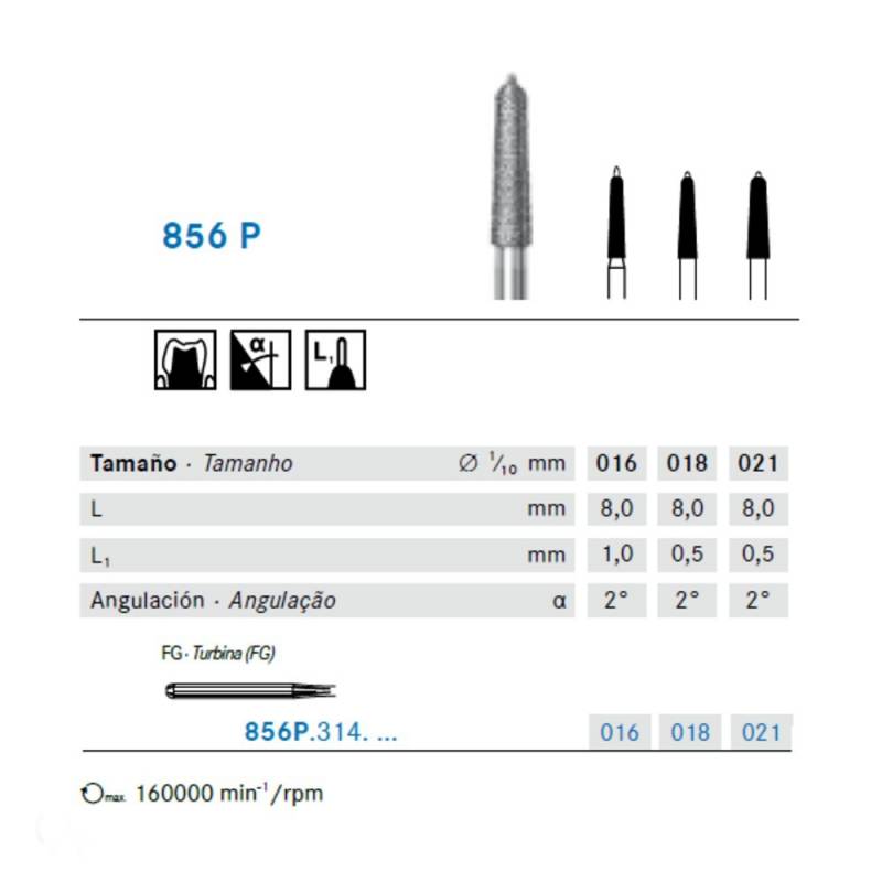 La fresa Komet 856 P es una fresa diamante para turbina, está indicada para la preparación de coronas.