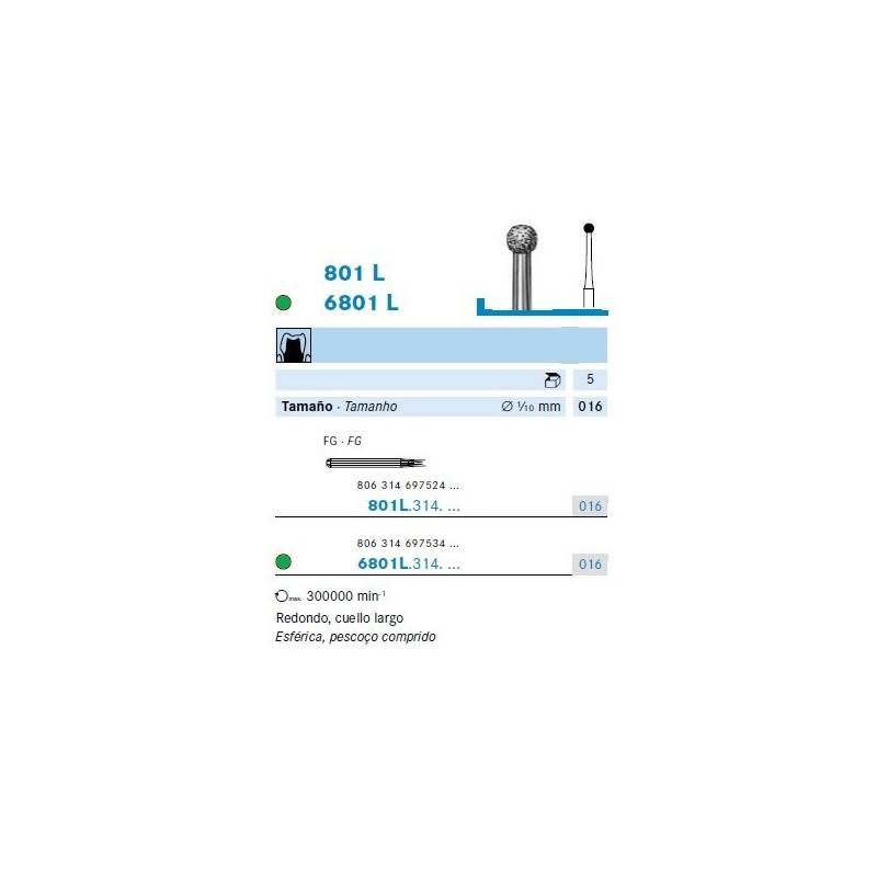 Fresa Turbina Bola Cuello Alargado FG 5u de Komet.