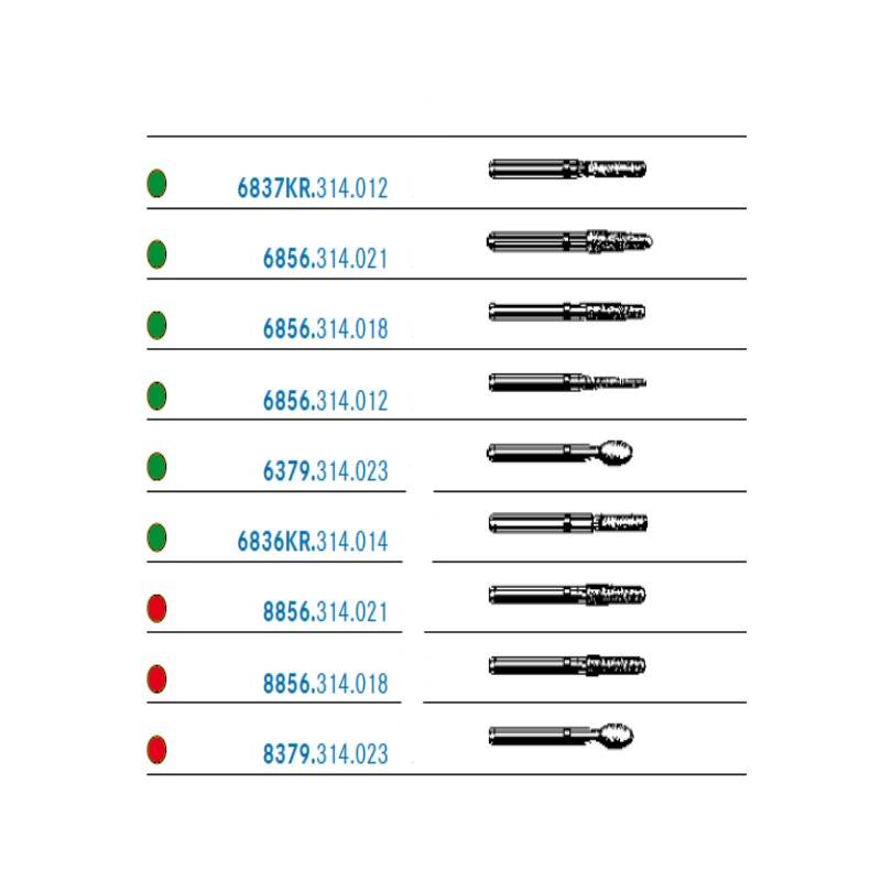 - Set 4573 de 9 fresas FG diamantadas para turbina.