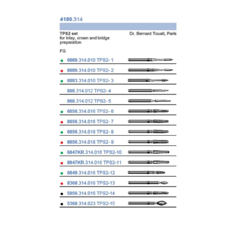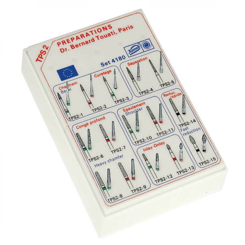 El TPS 2 Set 4180 Dr. Bernard Touati de Komet está desarrollado para facilitar y simplificar la preparación de cavidades para inlays, puentes y coronas.