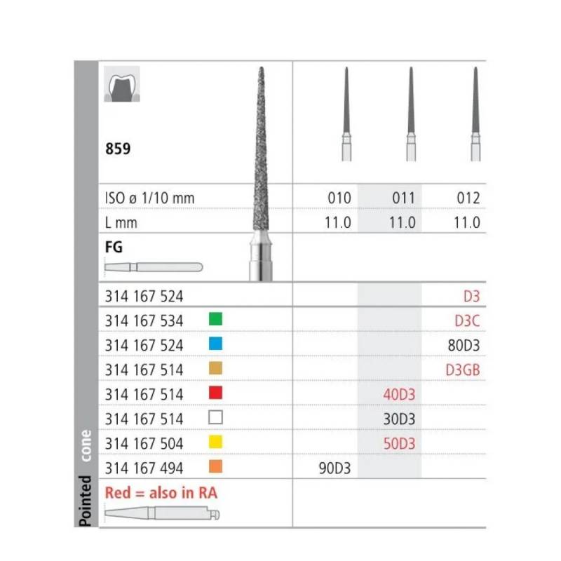 Fresas Diamante FG 30D3 Fino 859-011 Lanza Cono Puntiagudo 6 uds Intensiv