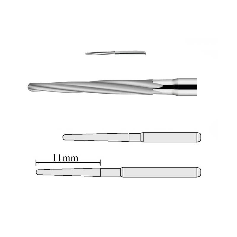 - Fresa quirúrgica dr. Zekrya. De corte lateral. Para apertura de la cámara pulpar.