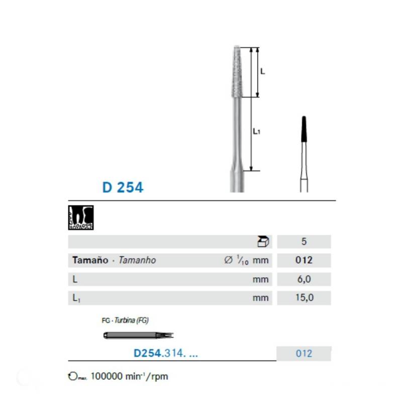Fresa Diamante D254.314.012 Cónica FG Clínica Cirugía 5 uds Komet