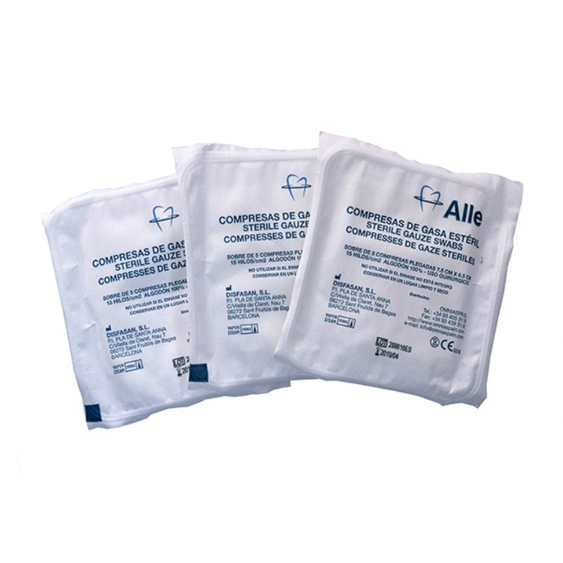 Gasas de Algodón Estériles 16x25cm Caja 250 Sobres de 5 unidades Alle Dental