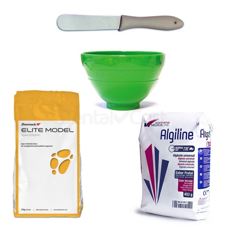 - Compuesto por alginato, taza y espátula de mezcla, y escayola.