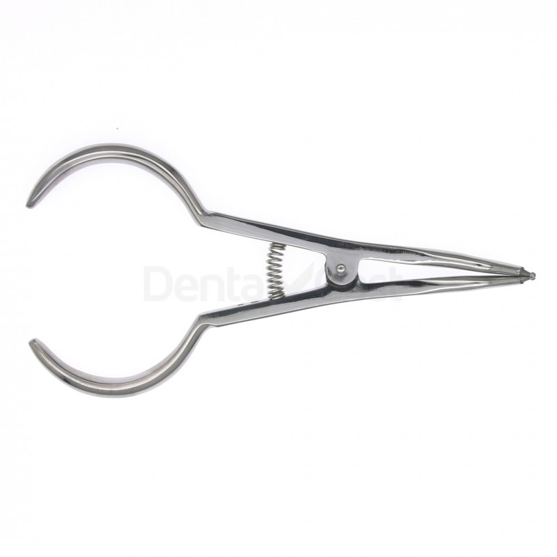 Alicate para Posicionar Elásticos. Con muelle para controlar la apertura y tensión del instrumento.