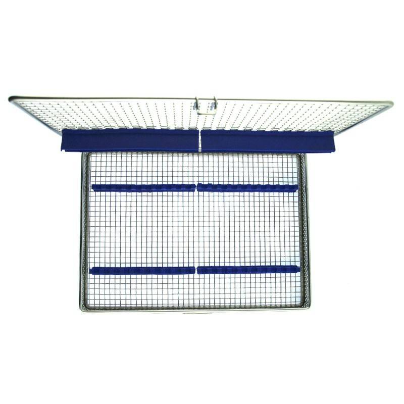 - Bandeja con tapa, tipo caja, para esterilizar instrumental dental.