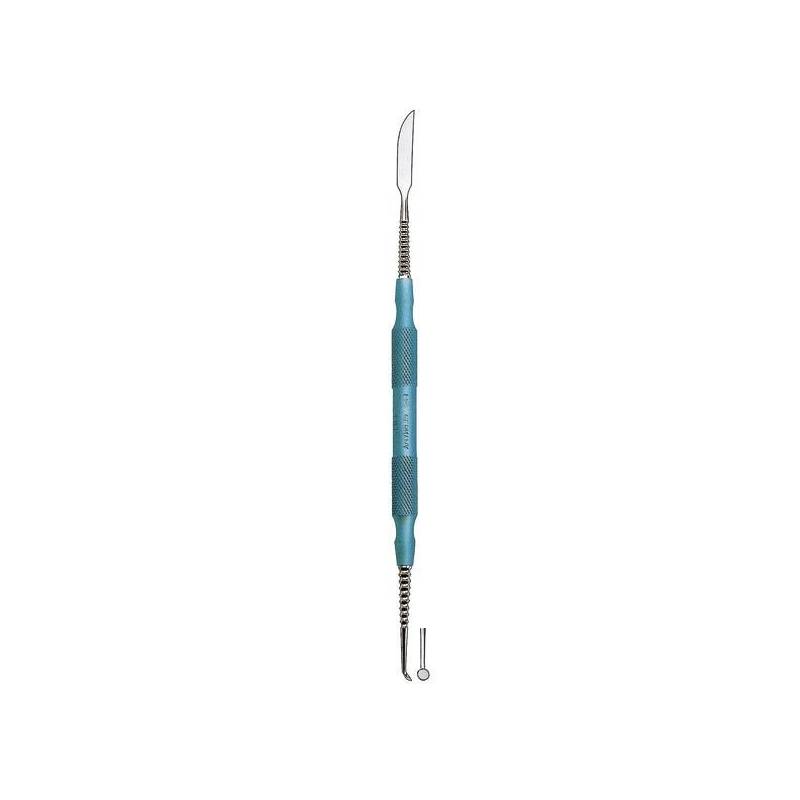 - Uno, con una cuchilla estrecha y alargada y otro, con forma de cucharilla plana y angulada.
