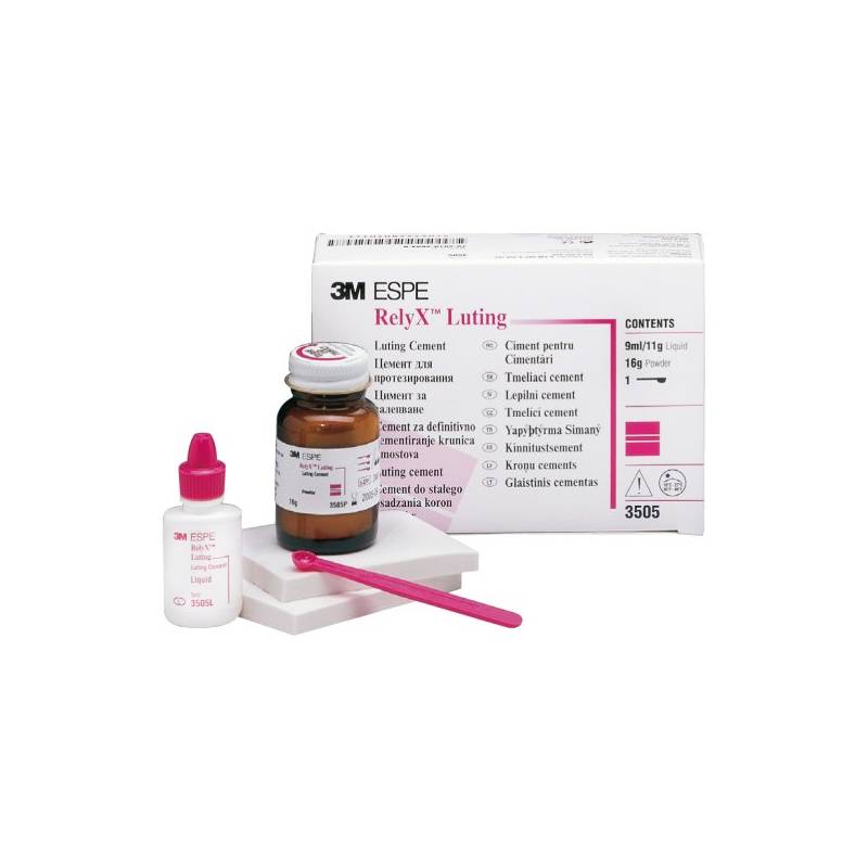 Relyx Luting de 3M es un cemento definitivo (polvo+líquido) a base de ionómero de vidrio modificado con resina, que responde a las necesidades diarias para cementaciones rutinarias de metal y metal-porcelana.