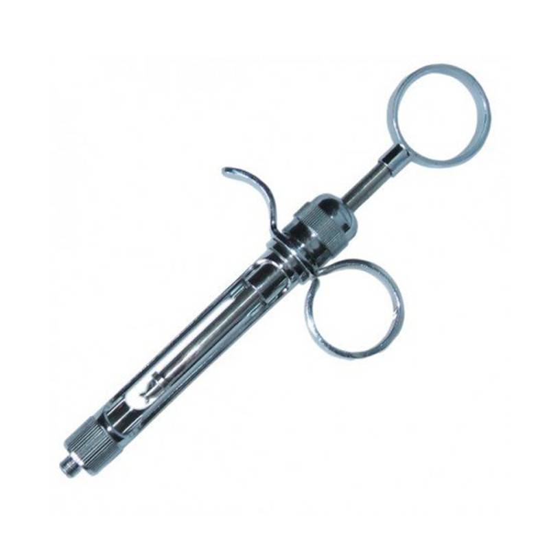 Jeringa de Metal Cromado con Sistema de Aspiración con Arpón de Clarben.