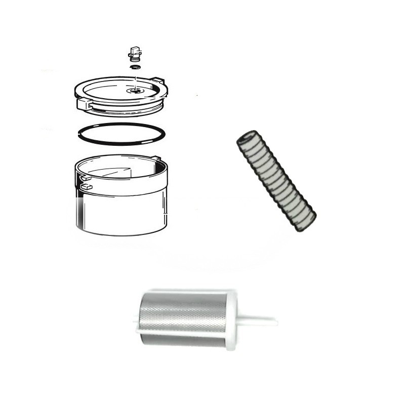 - Reposición de: contenedor + filtro inoxidable + tubo espiral.