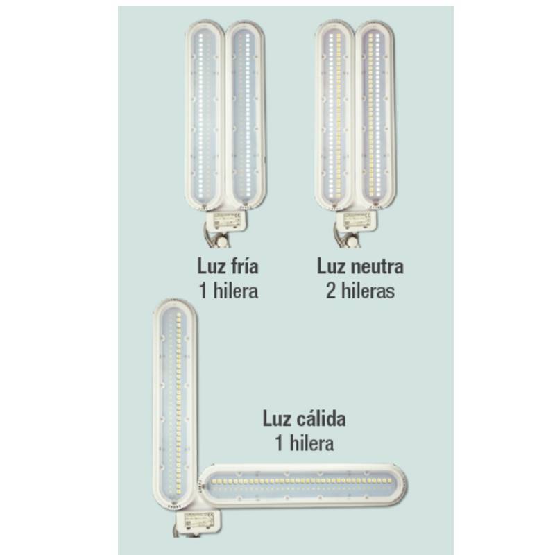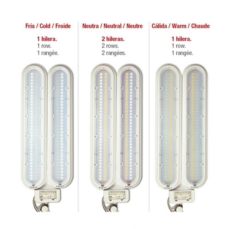 - 140 LEDs. 3 tipos de luz: fría, neutra y cálida.