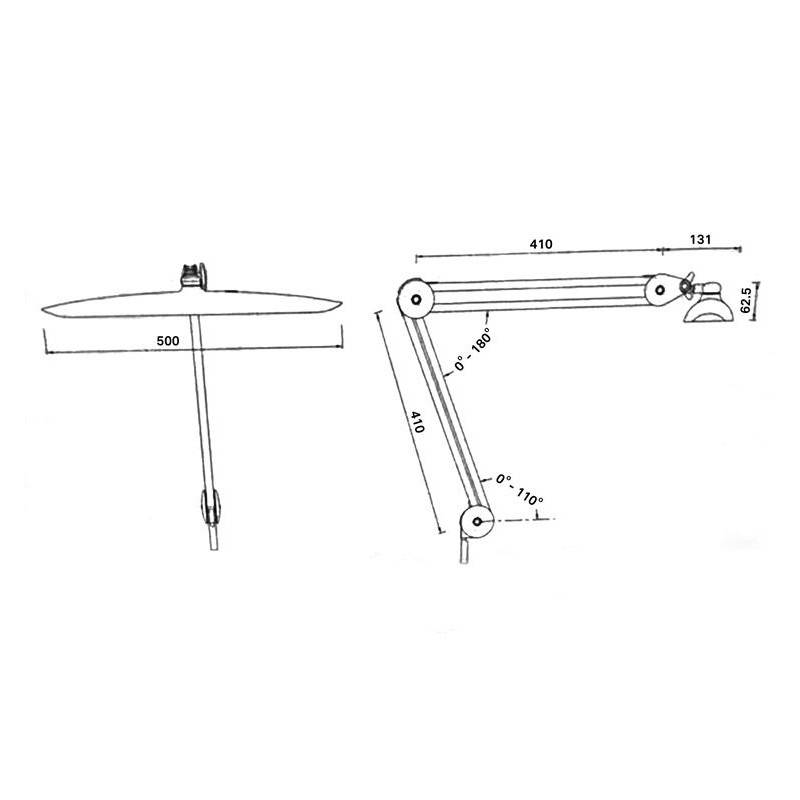 - Brazo articulado. Soporte de sobremesa, pinza de fijación.
