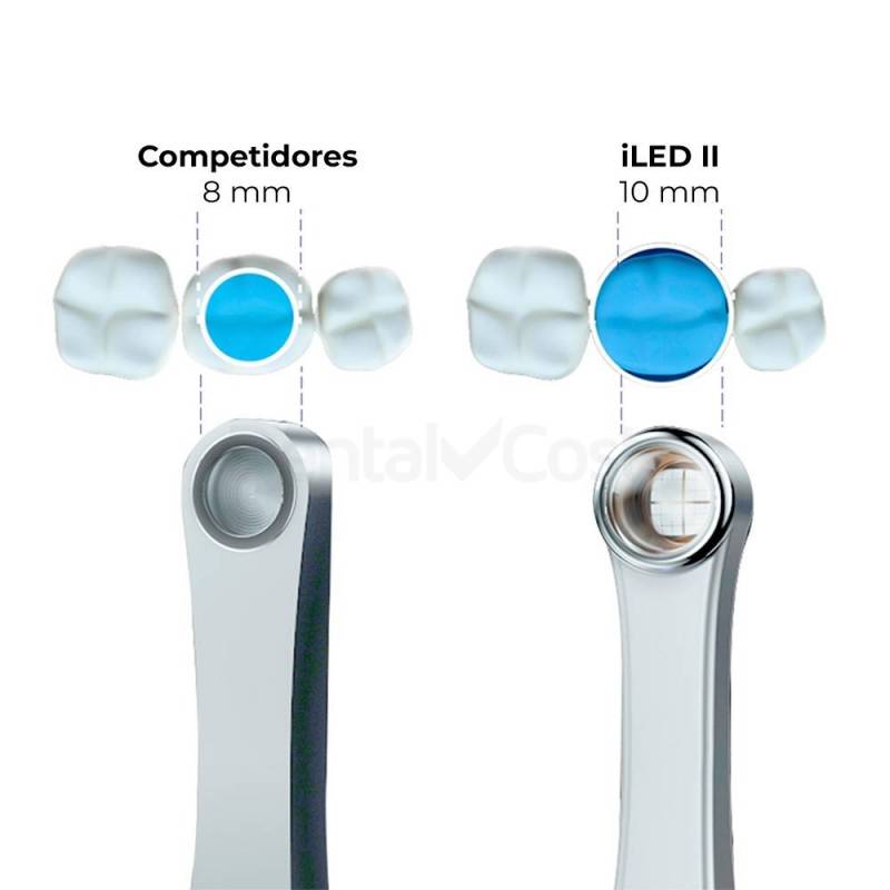 La batería de 2.000 mAh de la lámpara iLED II Woodpecker no requiere tiempo de espera, permitiendo uso inmediato. Su superficie de polimerización de 10mm asegura cobertura adecuada en diferentes aplicaciones clínicas.