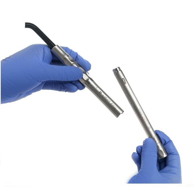 D-Light Pro ofrece un modo de detección único (DT) basado en la luz ultravioleta corta únicamente; que ayuda a visualizar y detectar lo que a simple vista se nos escapa: bacterias en la placa, fisuras, dentina infecta y microfisuras. También nos ayuda a identificar los materiales en restauraciones fluorescentes, o los excesos de cemento, a evaluar la profundidad de los cracks en la estructura dental.