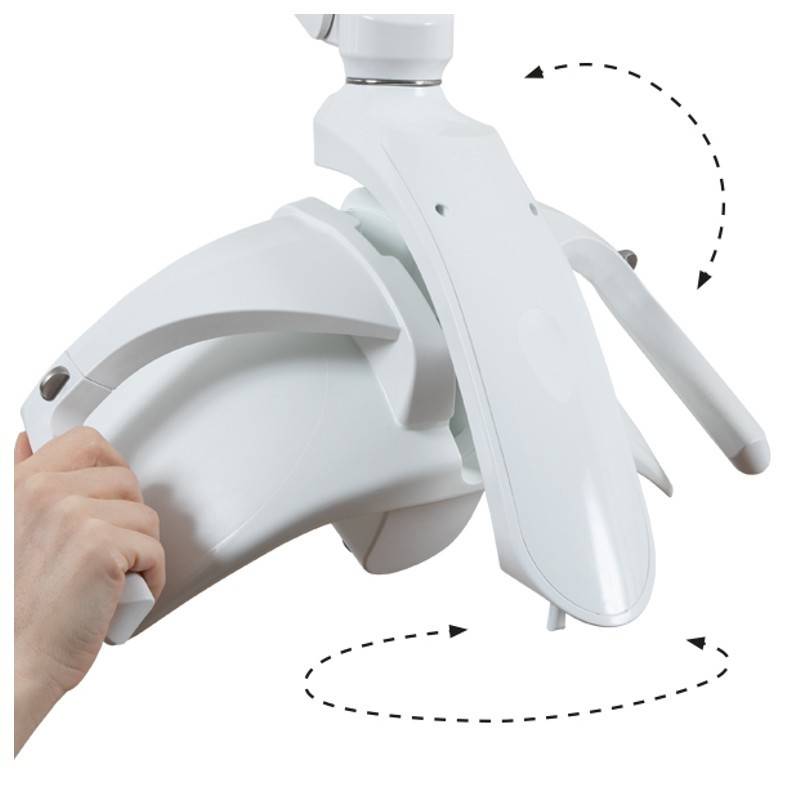 Rotación del cabezal > 360° para iluminar todos los recovecos de la cavidad bucal.