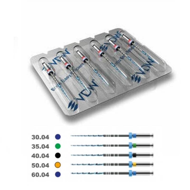 El envase de limas rotatorias VDW.Rotate 31mm .04 para modelado de anatomías de canales grandes contiene 1 blister de 6 unidades, a elegir.