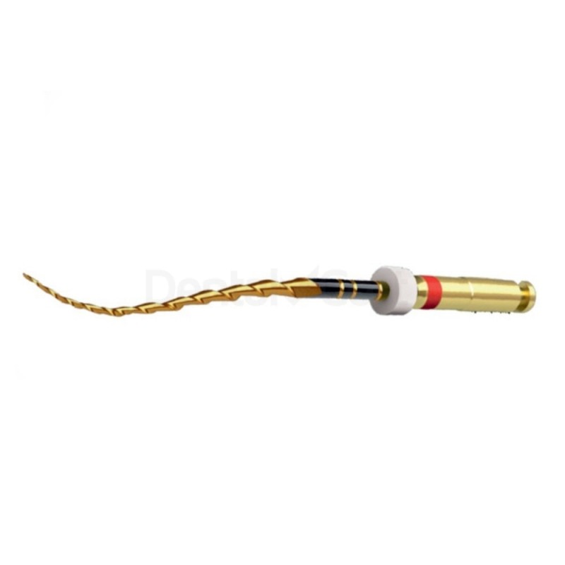 Las limas Ni-Ti rotatorias con anillo identificativo rojo y tope blanco, presentan una conicidad de 4% y una longitud de 25 mm, están disponibles en 3 tamaños: 25 - 35 y 45