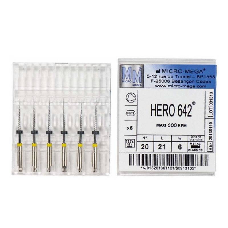 La caja de Limas rotatorias Hero 642 MicroMega 06 L21 mm contiene: 6 unidades.