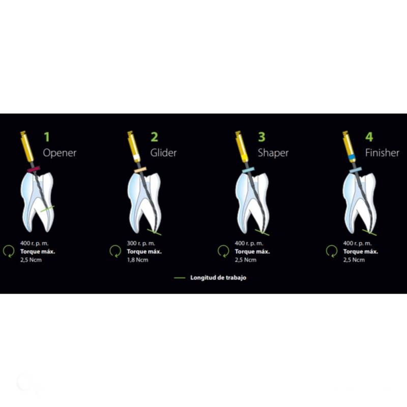 Consta de 4 limas NiTi para secuencia OGSF de 4 pasos: