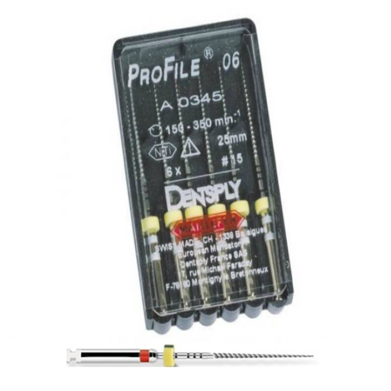 Profile de Maillefer es un instrumento rotatorio fabricado con una aleación Níquel-Titanio. Su gran flexibilidad permite conformar el conducto delicadamente, sobre todo a nivel apical.