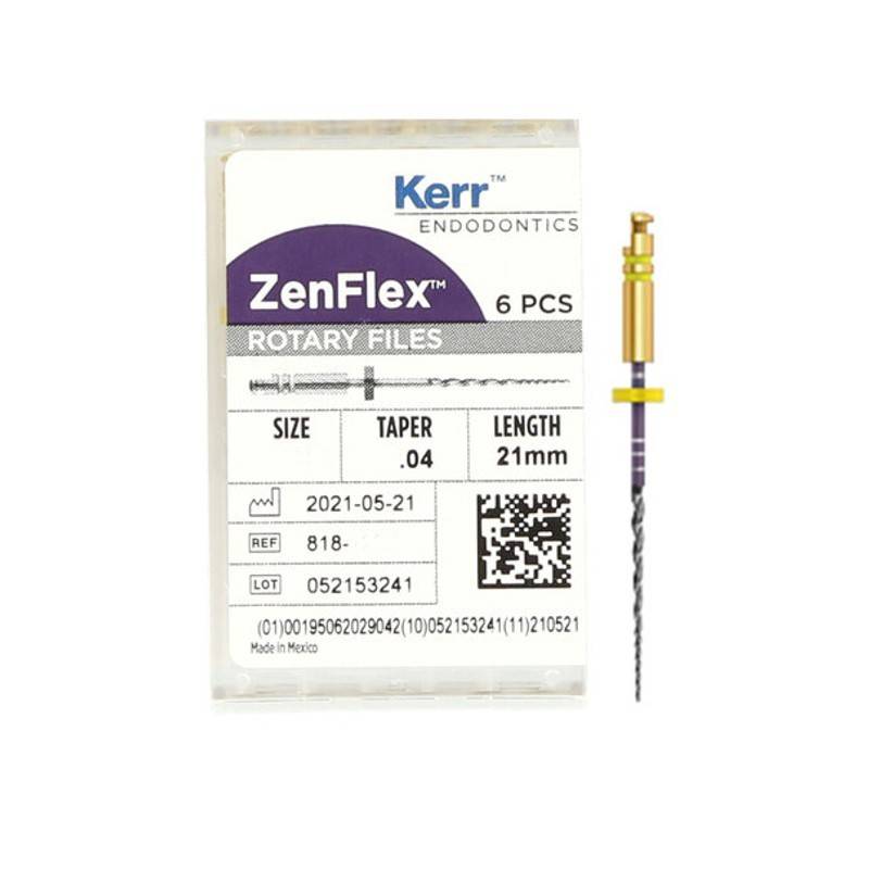 La caja de Limas ni-ti Zenflex Conicidad .04 21mm de Kerr contiene 6 unidades a elegir tamaño entre los disponibles o surtido.