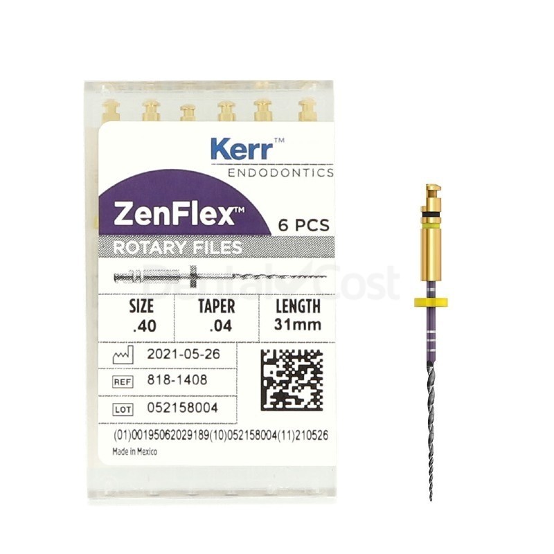 La caja de Limas ni-ti Zenflex 40 / .04 / 31mm de Kerr contiene 6 unidades.