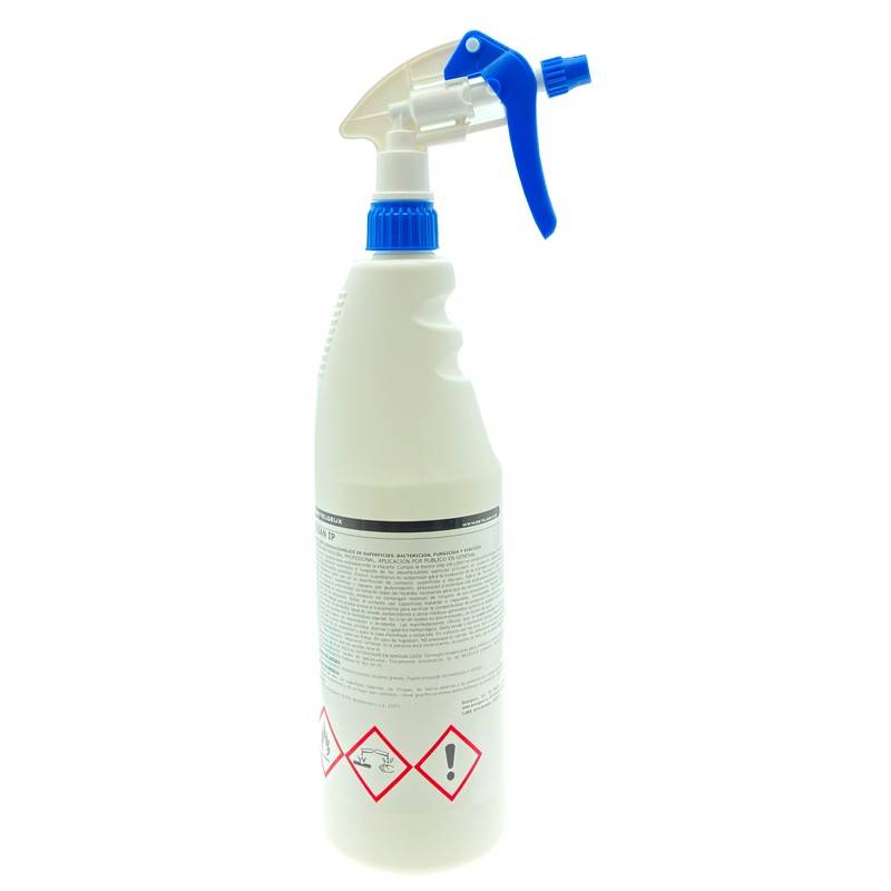 Determinado mediante ensayos realizados según la norma UNE-EN 13697 por laboratorio acreditado y superando la norma es bactericida, frente a los microorganismos Escherichia coli, Staphylococcus aureus, Pseudomonas aeruginosa, Enterococcus hirae, Salmonella typhimurium, Listeria monocytogenes y Campylobacter jejuni.