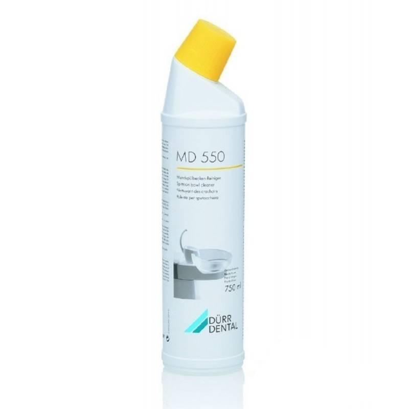 MD 550 Durr Dental es una solución lista para usar indicada para la limpieza, desodorización y el mantenimiento simultáneos de las escupideras de los equipos dentales