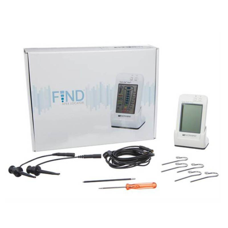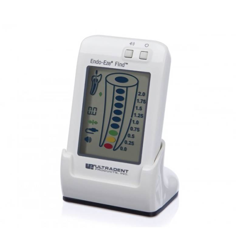 Endo-Eze FIND de Ultradent es un dispositivo electrónico portátil para la localización del ápice. Indicado para aquellos pacientes que necesitan someterse a tratamiento de conducto radicular, y a su vez requieren una determinación muy precisa de la posición de la lima dental en el canal radicular en relación con el ápice de la raíz.